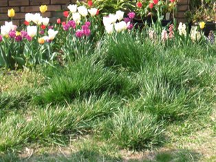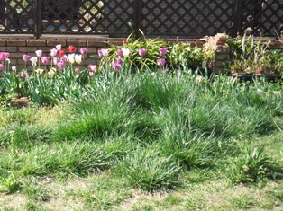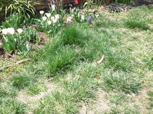 これまでの「緑の芝生」は昨秋に撒いた一年草」でしたが、「宿根草」にチェンジしたいと思っています。