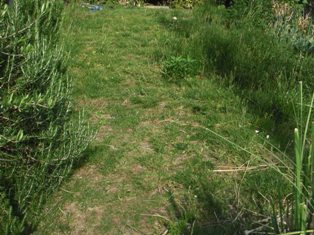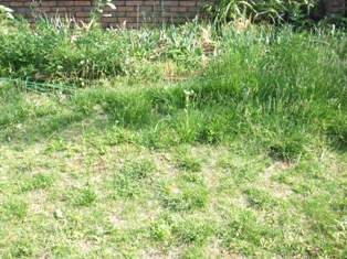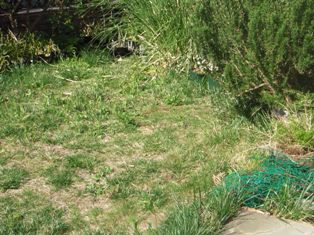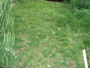 2013年は春に裸地だらけで再開し、芝生と雑草が伸びるのに任せ、夏は乾燥して芝生が枯れるので、雑草を伸ばして乾燥を防ぐようにしました。