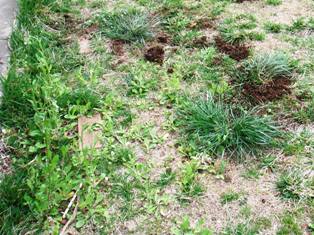 毎年全面を完全に再生しようとすると、手が回りきらず中途半端になりかねません。日差しが強く枯れやすいところは止むをえませんが、それほどひどくないところは、一部に補植する程度にして、種まきを省略します。