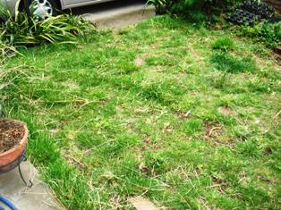 幸い、芝生が生えてしまった所には秋に種まきすると、良く生えて、少なくとも毎冬緑を楽しむことができます。